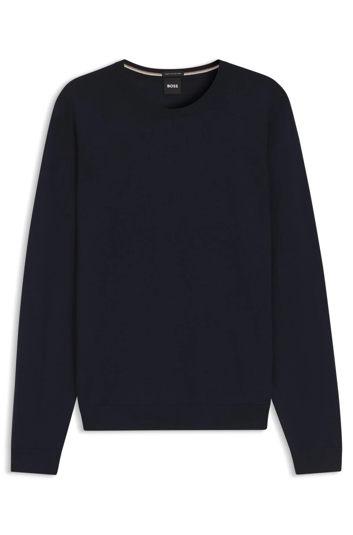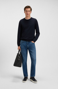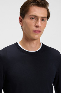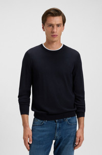 SIZE AND FIT The model wears a size M and is 6'1" tall with a, 36" chest, 29" waist and 36" hips. DETAILS Leno-P - 50468239 A soft and breathable sweater by BOSS Menswear. Cut to a slim fit, this crew-neck layer is crafted in merino wool. Neckline: Crew neck Long sleeves Standard length QUALITY & CARE INSTRUCTIONS Iron Medium Heat Cold, gentle machine wash; reduced spin speed. Do Not Bleach Dry Clean Only Do Not Tumble Dry Quality: 100% Virgin wool