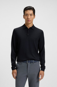 SIZE AND FIT The model wears a size M and is 6'1" tall with a, 0" chest, 31" waist and 37" hips. DETAILS Lancione - 50476355 A distinctive sweater with a polo collar by BOSS. Cut to a slim fit, this piece is knitted in soft and breathable yarn. Neckline: Polo collar Long sleeves QUALITY & CARE INSTRUCTIONS Iron Medium Heat Do Not Tumble Dry Dry Clean Only Quality: 100% Virgin wool Cold, gentle machine wash; reduced spin speed. Do Not Bleach