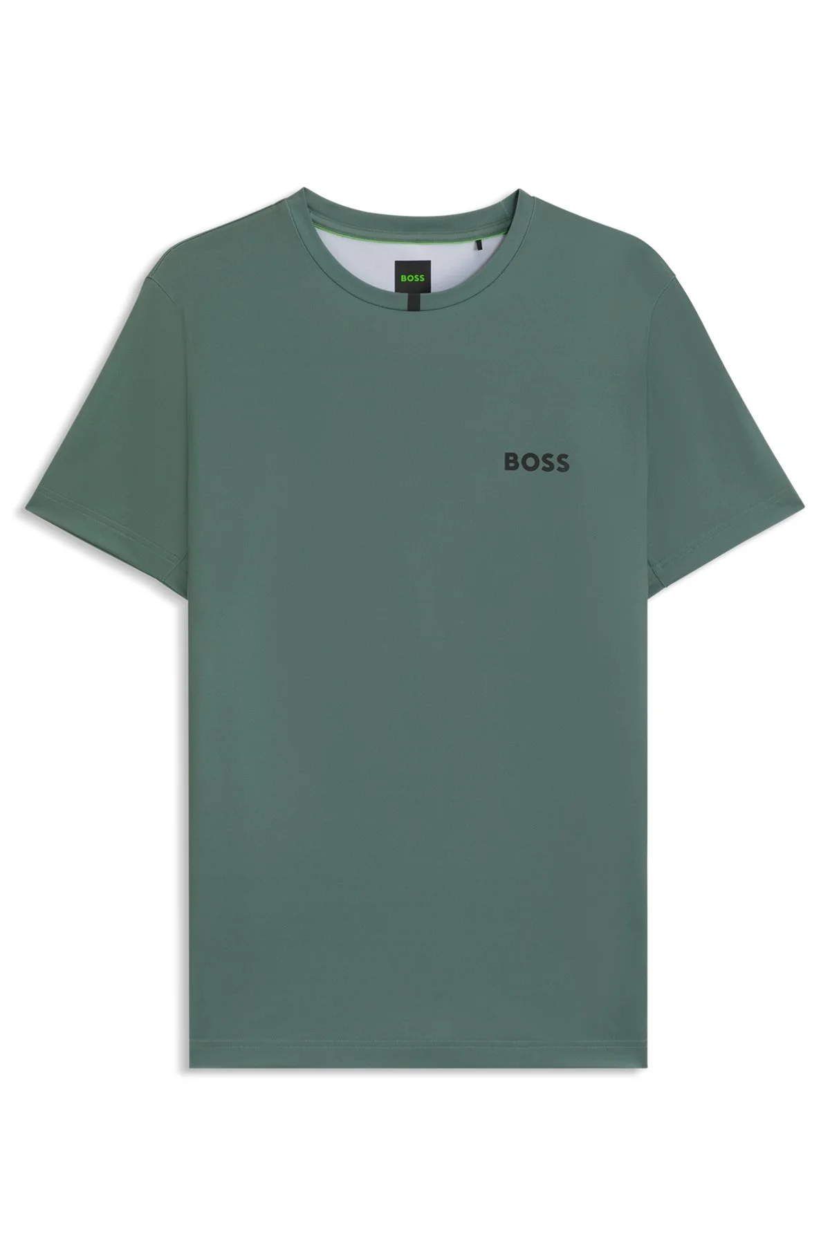 SIZE AND FIT The model wears a size M and is 6'2" tall with a, 36" chest, 31" waist and 38" hips. DETAILS Tee TOC - 50543328 With moisture management and odor control, this slim BOSS Menswear T-shirt keeps you feeling fresh. Engineered in stretch pique. Signature stripe and contrast logo. Slim fit Neckline: Crew neck Short sleeves Standard length QUALITY & CARE INSTRUCTIONS Do Not Tumble Dry Machine Wash Cold Gentle Iron Low Heat Do Not Bleach Quality: 93% Polyester, 7% Elastane Do Not Dry Clean