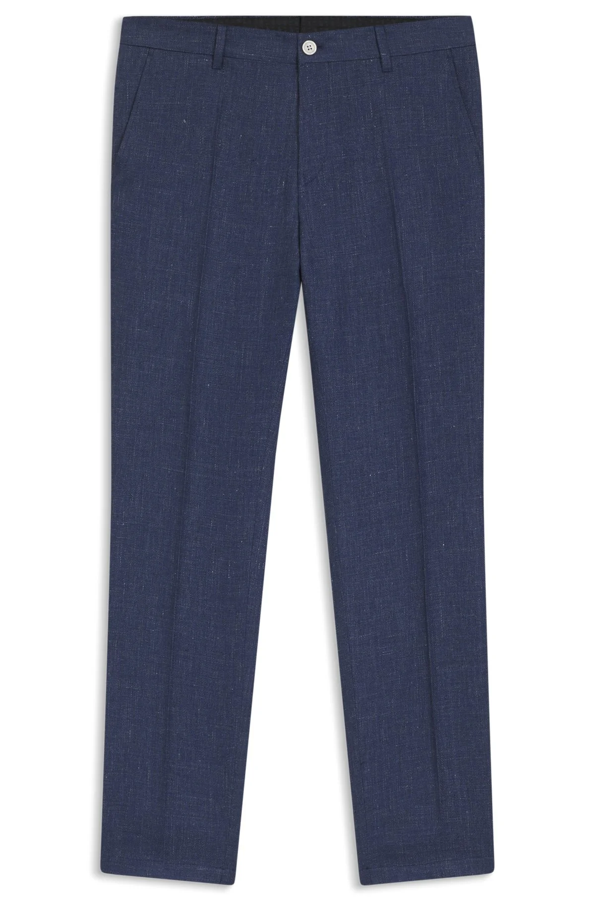 DETAILS In a linen blend with a subtle pattern, these BOSS Menswear trousers have a clean slim fit. Flat-front design. Slim fit Button and zip closure Pockets bottom front: Side slash pockets Pockets bottom back: Welt pocket Partially lined C-Genius-262 - 50561886 QUALITY & CARE INSTRUCTIONS Iron Low Heat Do Not Wash Dry Clean Only Material: 64% Linen, 36% Lyocell, pocketing: 65% Polyester, 35% Cotton Do Not Bleach Do Not Tumble Dry