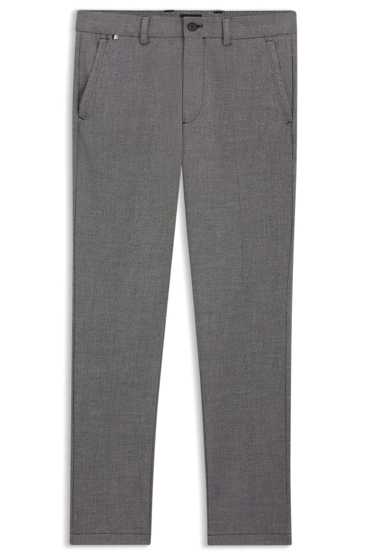 SIZE AND FIT The model wears a size 32/32 and is 6'1" tall with a, 36" chest, 29" waist and 36" hips. DETAILS H-Kaiton1 - 50546875 Woven with a dobby structure, these classic BOSS Menswear trousers are cut to a slim fit. Crafted in stretch fabric for comfort in movement. Slim fit Regular rise Button and zip closure Pockets bottom front: French pocket Pockets bottom back: Welt pocket QUALITY & CARE INSTRUCTIONS Do Not Bleach Iron Low Heat Quality: 62% Polyester, 33% Viscose, 5% Elastane, pocketing: 65% Polyester, 35% Cotton Reduced Dry Clean Machine Wash Cold Gentle Do Not Tumble Dry