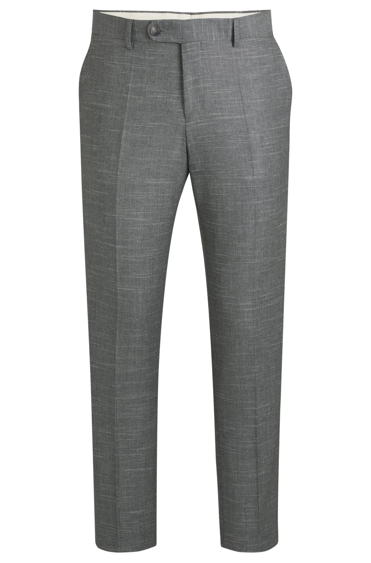 SIZE AND FIT The model wears a size 32R and is 6'1" tall with a, 36" chest, 29" waist and 37" hips. DETAILS H-Genius-251 - 50535685 Tailored trousers in stretch-wool with cotton and linen by BOSS Menswear. This slim-fit pair features a refined pattern for easy styling. Slim fit QUALITY & CARE INSTRUCTIONS Iron Low Heat Do Not Wash Reduced Dry Clean Quality: 64% Virgin wool, 26% Cotton, 7% Linen, 2% Polyamid, 1% Elastane, pocketing: 65% Polyester, 35% Cotton, knee lining: 100% Viscose Do Not Bleach Do Not Tumble Dry