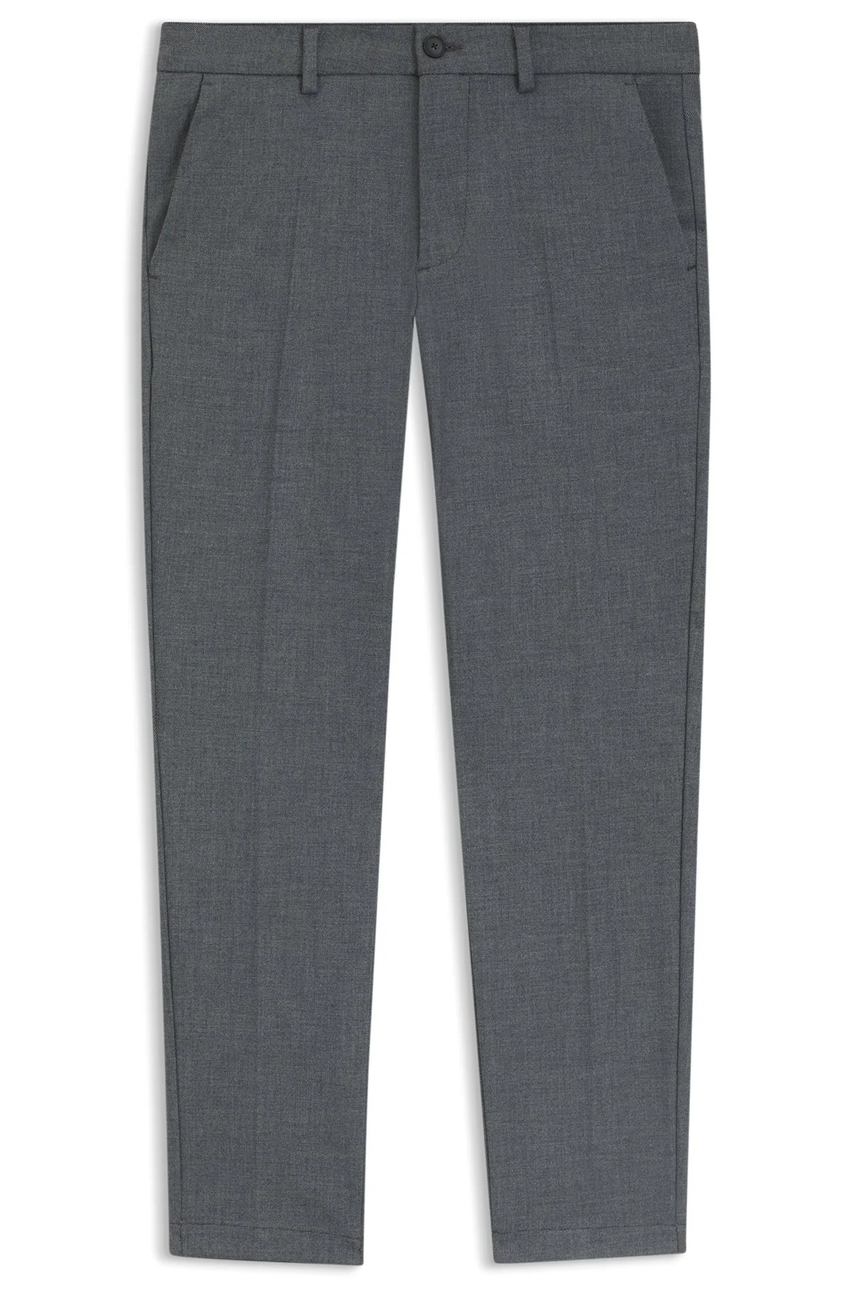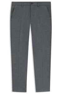 SIZE AND FIT The model wears a size 32/32 and is 6'2" tall with a, 35" chest, 27" waist and 35" hips. DETAILS P-Kaiton1 - 50549473 In stain-repellent dobby for an impeccable look that lasts, these slim-cut, easy-care BOSS Menswear trousers are a contemporary must. Tapered leg Slim fit Regular rise Button and zip closure Tapered leg Pockets bottom front: French pocket Pockets bottom back: Welt pocket QUALITY & CARE INSTRUCTIONS Iron Low Heat Machine Wash Cold Gentle Reduced Dry Clean Do Not Tumble Dry Quality: 62% Polyester, 33% Viscose, 5% Elastane, pocketing: 65% Polyester, 35% Cotton Do Not Bleach
