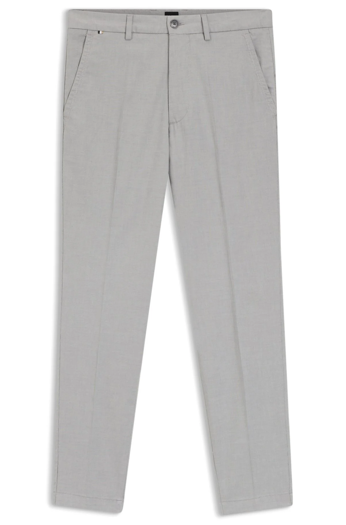 DETAILS Cut to a defined fit, these BOSS Menswear trousers are designed in soft cotton with stretch for comfort. Characterful two-tone dobby weave. Regular rise. Slim fit Regular rise Button and zip closure Pockets bottom front: French pocket Pockets bottom back: Welt pocket H-Kaiton1 - 50553813 QUALITY & CARE INSTRUCTIONS Machine Wash Cold Gentle Do Not Bleach Do Not Tumble Dry Iron Low Heat Material: 97% Cotton, 3% Elastane, pocketing: 65% Polyester, 35% Cotton Reduced Dry Clean