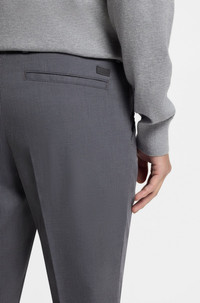 SIZE AND FIT The model wears a size 32/32 and is 6'1" tall with a, 36" chest, 29" waist and 36" hips. DETAILS Cut to a defined fit, these BOSS Menswear trousers are designed in soft cotton with stretch for comfort. Characterful two-tone dobby weave. Regular rise. Slim fit Regular rise Button and zip closure Pockets bottom front: French pocket Pockets bottom back: Welt pocket H-Kaiton1 - 50553813 QUALITY & CARE INSTRUCTIONS Machine Wash Cold Gentle Do Not Bleach Do Not Tumble Dry Iron Low Heat Material: 97% Cotton, 3% Elastane, pocketing: 65% Polyester, 35% Cotton Reduced Dry Clean