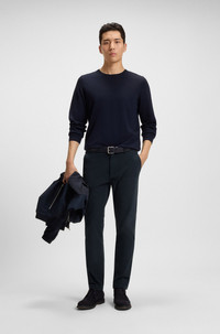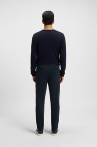SIZE AND FIT The model wears a size 32/32 and is 6'1" tall with a, 36" chest, 29" waist and 36" hips. DETAILS H-Kaiton1 - 50543312 In stretch-cotton twill with a softly brushed finish, these BOSS Menswear trousers are a great casual building block. Contemporary slim fit. Slim fit Regular rise Button and zip closure Pockets bottom front: French pocket Pockets bottom back: Welt pocket QUALITY & CARE INSTRUCTIONS Reduced Dry Clean Machine Wash Cold Gentle Do Not Tumble Dry Quality: 95% Cotton, 5% Elastane Do Not Bleach Iron Low Heat