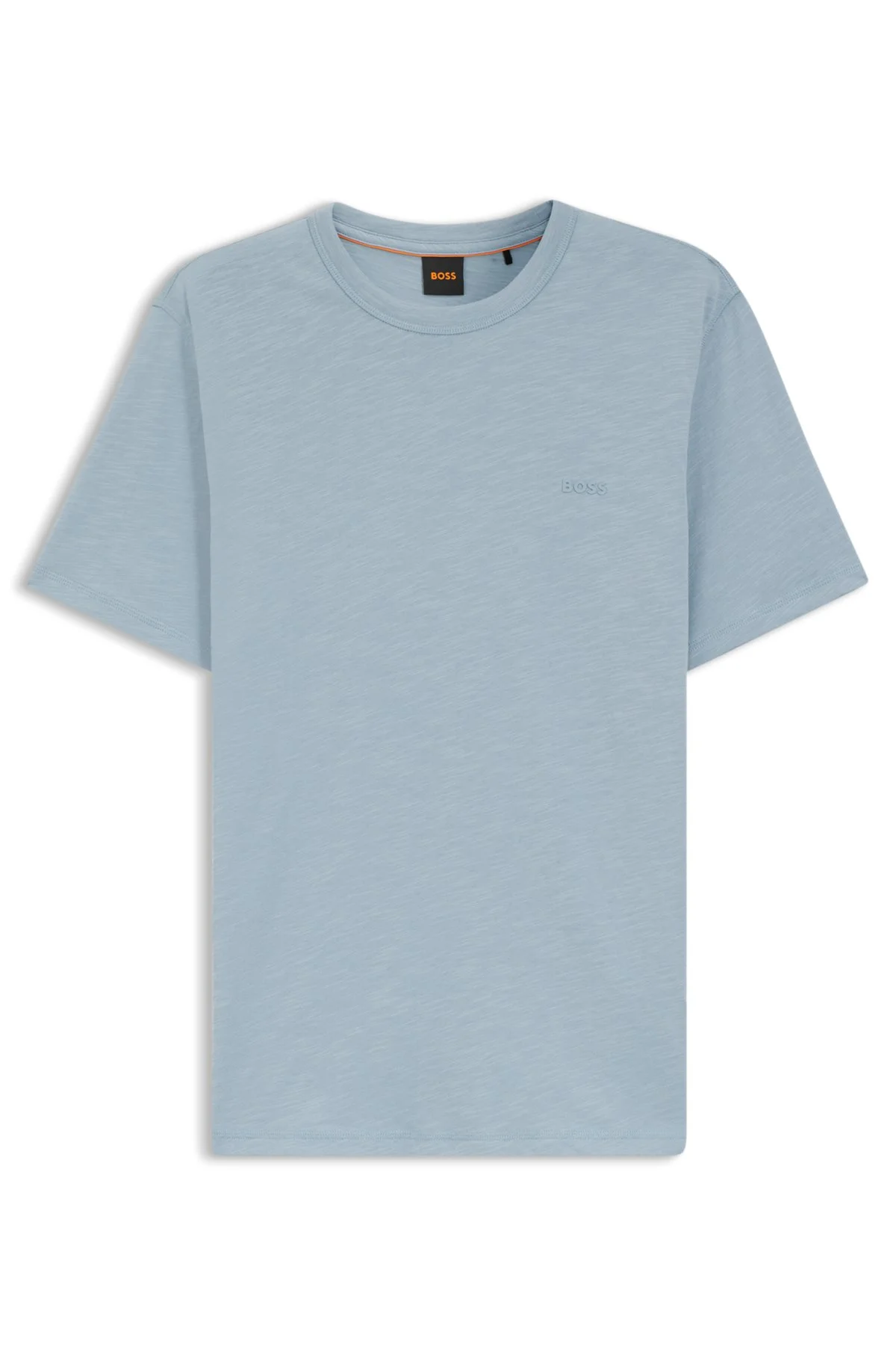 SIZE AND FIT The model wears a size M and is 6'1" tall with a, 37" chest, 29" waist and 35" hips. DETAILS An effortless wardrobe staple, this BOSS Menswear T-shirt is crafted in slub jersey made from soft cotton. Tonal logo detail. Cut to a straight fit. Regular fit Neckline: Crew neck Short sleeves Tegood - 50508243 QUALITY & CARE INSTRUCTIONS Do Not Bleach Do Not Tumble Dry Iron Low Heat Do Not Dry Clean Machine Wash Cold Gentle Material: 100% Cotton