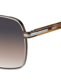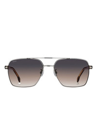 square sunglasses Highlights - Silver-tone and brown - Square frame - Nose pads - Gradient lenses - Brown temple tips - Logo detail - These glasses come with a protective case. Imported Composition Metal 100%, Acetate 100%, stainless steel 100% SIZE & FIT Measurement Arm Length 5.9 in(15 cm) Bridge Width 0.66 in(1.7 cm) Lens Diameter 2.28 in(5.8 cm)