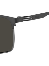 square sunglasses Highlights - Matte black - Square frame - Titanium - Grey lenses - Bar detail arm - Subtle branding - These glasses come with a protective case. Imported Composition Titanium 100% SIZE & FIT Measurement Arm Length 5.7 in(14.5 cm) Bridge Width 0.7 in(1.8 cm) Lens Diameter 2.24 in(5.7 cm)