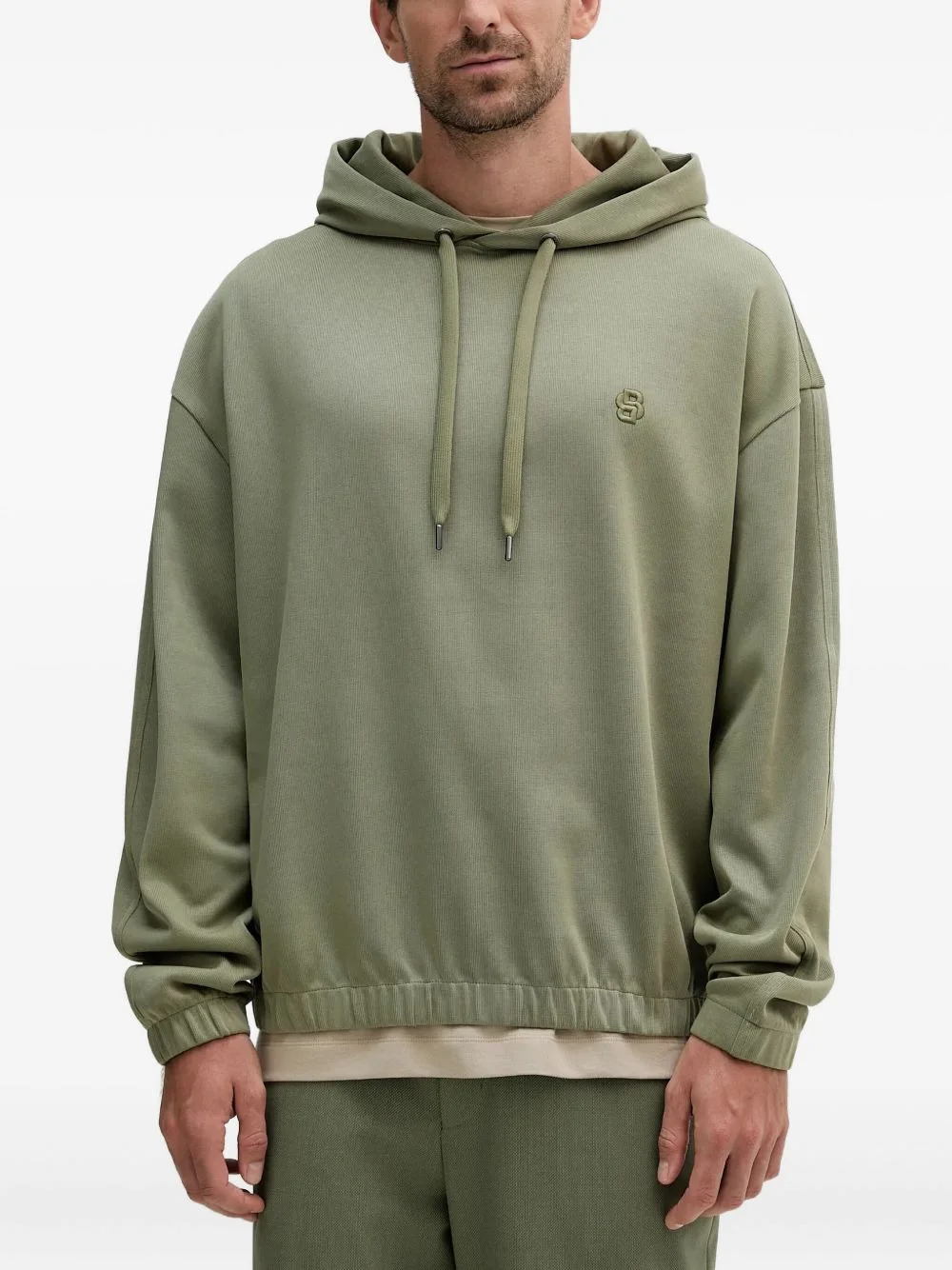 Stevens logo-embroidered drawstring hoodie Highlights - Olive green - Drawstring hood - Embroidered logo - Dropped shoulders - Ribbed cuffs - Hem with elasticated drawstring Imported Composition Cotton 100% Washing instructions Read Manufacturer Guidelines