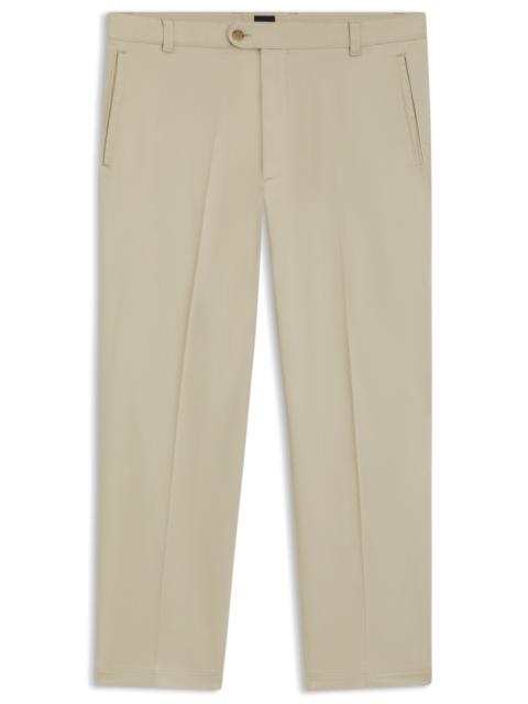 SIZE AND FIT The model wears a size 32R and is 6'1" tall with a, 36" chest, 28" waist and 36" hips. DETAILS C-Kleon - 50530860 Dobby-woven trousers by BOSS Menswear, crafted in cotton blended with stretch. This regular-rise pair is cut to a casual straight fit. Straight fit Regular rise Button and zip closure Counter button Pockets bottom front: Side pockets Pockets bottom back: Welt pocket QUALITY & CARE INSTRUCTIONS Reduced Dry Clean Do Not Bleach Do Not Tumble Dry Iron Low Heat Quality: 99% Cotton, 1% Elastane, pocketing: 50% Polyester, 50% Cotton Machine Wash Cold Gentle