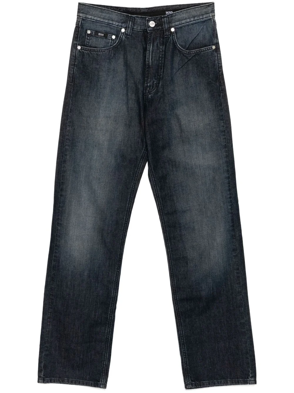 straight-leg jeans Highlights - Indigo blue - Front button and zip fastening - Belt loops - Classic five pockets - Logo patch to the rear Imported Composition Cotton 100%