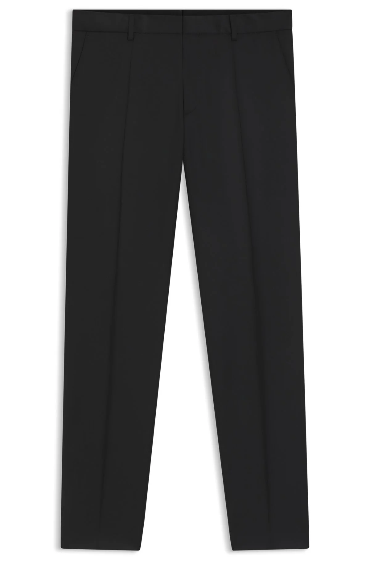 SIZE AND FIT The model wears a size 32R and is 6'1" tall with a, 35" chest, 29" waist and 36" hips. DETAILS H-Genius-B1 - 50469174 Cut a precise figure in these formal BOSS Menswear trousers. Crafted in finest wool with a serge weave and natural stretch for comfort. Slim fit. Slim fit Hook and zip closure Crease Pockets bottom front: French pocket Pockets bottom back: Jetted pockets QUALITY & CARE INSTRUCTIONS Quality: 100% Virgin wool, pocketing: 65% Polyester, 35% Cotton, knee lining: 100% Viscose Iron Medium Heat Do Not Tumble Dry Do Not Bleach Do Not Wash Reduced Dry Clean