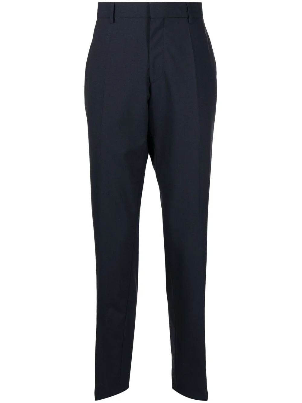 straight-leg tailored trousers blue stretch-wool belt loops two side inset pockets two rear welt pockets straight leg Made in Italy Composition Virgin Wool 95%, Elastane 5% SIZE & FIT Model measurements Height 6 ft 2 in(1.87 m) Bust/Chest 36.22 in(92 cm) Hips 37.79 in(96 cm) Waist 28.34 in(72 cm) FittingInformation This piece fits true to size. We recommend you get your regular size Regular fit Made with a mid-weight stretch fabric