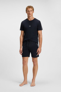 SIZE AND FIT The model wears a size M and is 6'2" tall with a, 36" chest, 31" waist and 38" hips. DETAILS Update your overnight options with the logo print and signature-stripe tape of these BOSS Menswear pajama shorts. Comfy stretch-cotton jersey. Covered waistband Drawstring Pockets bottom front: Side pockets Unique Shorts CW - 50545942 QUALITY & CARE INSTRUCTIONS Machine Wash Cold Iron Low Heat Material: 95% Cotton, 5% Elastane Do Not Bleach Do Not Dry Clean Tumble Dry Low Heat