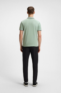 DETAILS Paul - 50506193 A contemporary polo shirt cut to a defined fit by BOSS Menswear, created in stretch cotton with contrast stripes and branding. Slim fit Neckline: Flat-knit collar Number of buttons: 2 Short sleeves Flat-knit cuffs Standard length QUALITY & CARE INSTRUCTIONS Do Not Bleach Quality: 92% Cotton, 8% Elastane Do Not Tumble Dry Do Not Dry Clean Iron Low Heat Machine Wash Cold Gentle