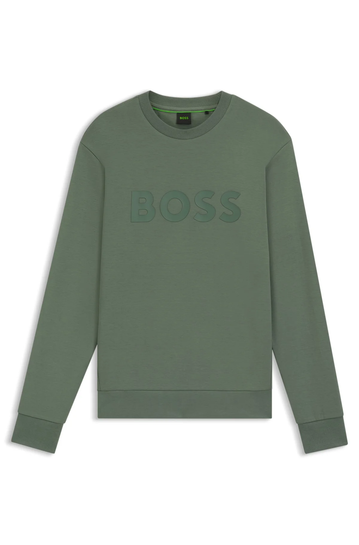 SIZE AND FIT The model wears a size L and is 6'1" tall with a, 39" chest, 31" waist and 35" hips. DETAILS An easy-wear sweatshirt in stretch cotton by BOSS Menswear. Cut to a straight fit, this layer features a sandwich-print logo at the chest. Regular fit Neckline: Crew neck Long sleeves Ribbed cuffs Standard length Salbo - 50506119 QUALITY & CARE INSTRUCTIONS Do Not Dry Clean Do Not Tumble Dry Do Not Bleach Material: 95% Cotton, 5% Elastane Iron Low Heat Machine Wash Cold Gentle