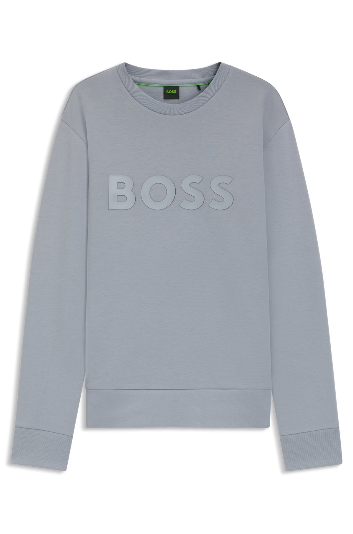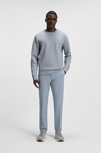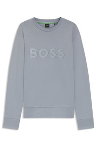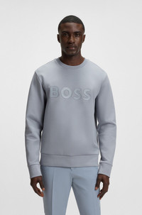 DETAILS Salbo - 50506119 An easy-wear sweatshirt in stretch cotton by BOSS Menswear. Cut to a straight fit, this layer features a sandwich-print logo at the chest. Regular fit Neckline: Crew neck Long sleeves Ribbed cuffs Standard length QUALITY & CARE INSTRUCTIONS Iron Low Heat Do Not Bleach Do Not Tumble Dry Machine Wash Cold Gentle Do Not Dry Clean Quality: 95% Cotton, 5% Elastane