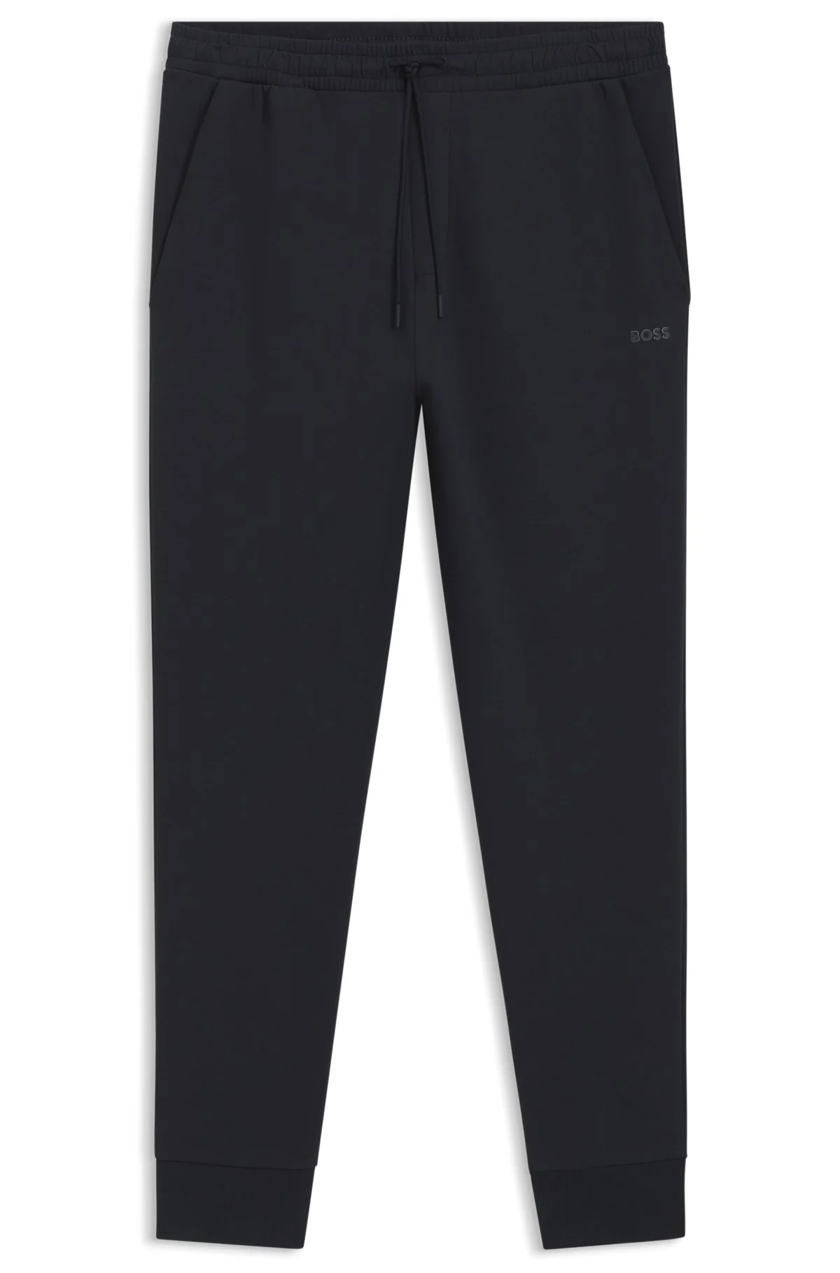 SIZE AND FIT The model wears a size L and is 6'2" tall with a, 38" chest, 31" waist and 37" hips. DETAILS Hadiko - 50506141 Casual cuffed tracksuit bottoms by BOSS Menswear, cut to a straight fit in stretch material with an HD logo print. Regular fit Drawstring Pockets bottom front: Side pockets QUALITY & CARE INSTRUCTIONS Iron Low Heat Quality: 95% Cotton, 5% Elastane Machine Wash Cold Gentle Do Not Bleach Do Not Tumble Dry Do Not Dry Clean