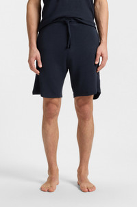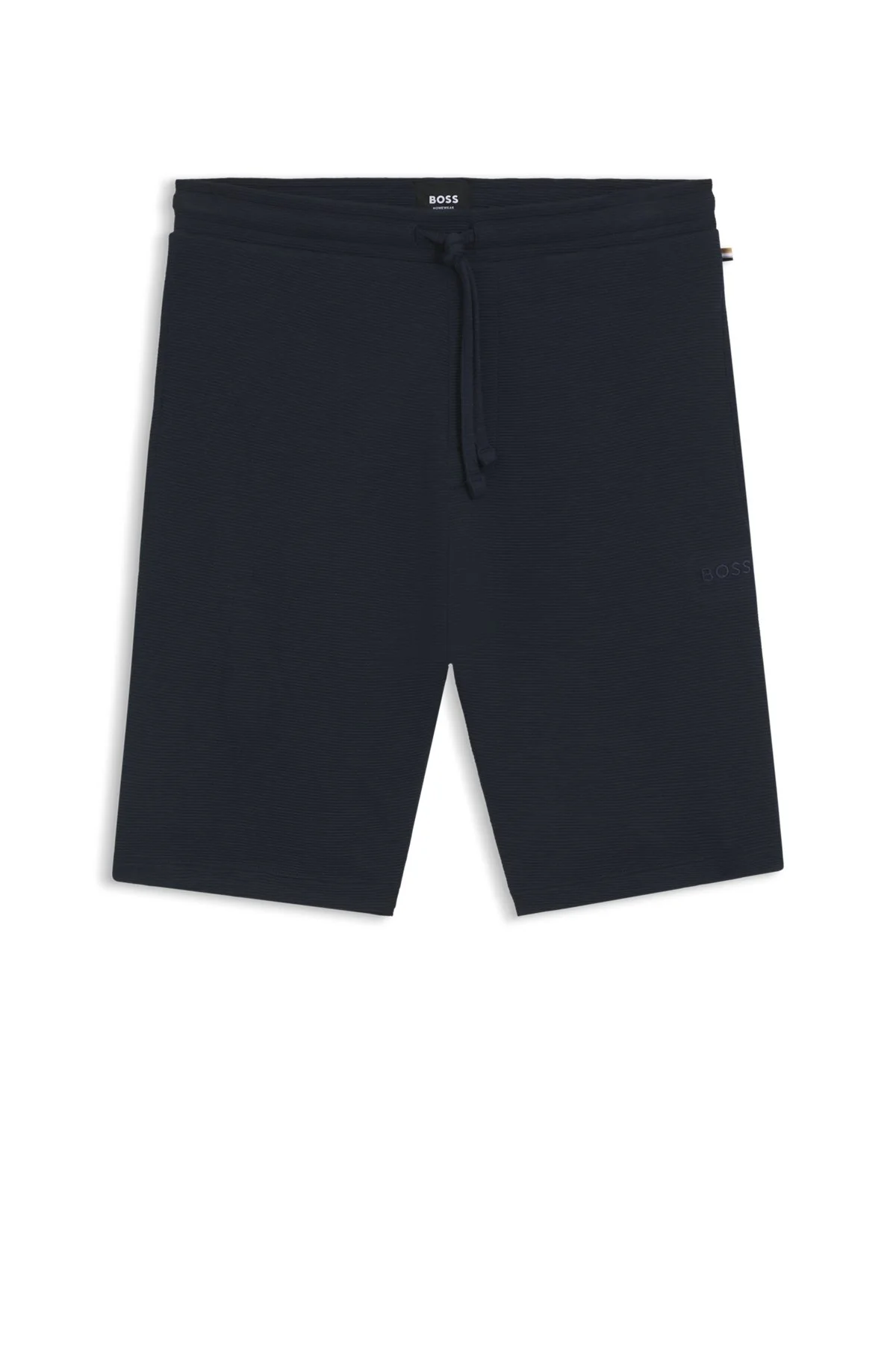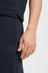 SIZE AND FIT The model wears a size M and is 6'1" tall with a, 38" chest, 29" waist and 37" hips. DETAILS Rib Shorts - 50509326 Drawstring pajama shorts by BOSS, designed in ottoman-structured stretch jersey and embroidered with a logo. Covered waistband Drawstring Pockets bottom front: Side pockets QUALITY & CARE INSTRUCTIONS Iron Medium Heat Machine Wash Warm Dry Clean Only Quality: 98% Modal, 2% Elastane Do Not Tumble Dry Do Not Bleach