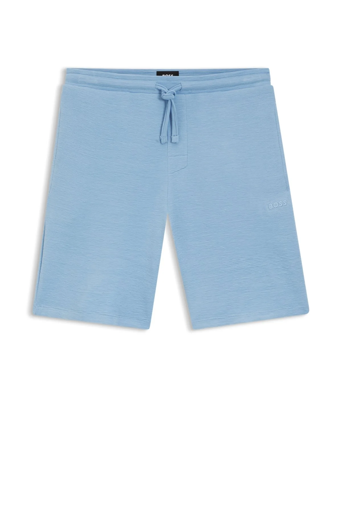 DETAILS Drawstring pajama shorts by BOSS, designed in ottoman-structured stretch jersey and embroidered with a logo. Covered waistband Drawstring Pockets bottom front: Side pockets Rib Shorts - 50509326 QUALITY & CARE INSTRUCTIONS Dry Clean Only Do Not Tumble Dry Machine Wash Warm Do Not Bleach Iron Medium Heat Quality: 98% Modal, 2% Elastane