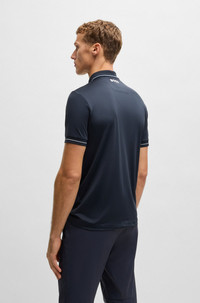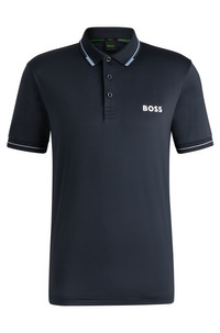 SIZE AND FIT The model wears a size L and is 6'2" tall with a, 36" chest, 31" waist and 38" hips. DETAILS Paul Pro - 50506203 A signature polo shirt in a slim fit by BOSS Menswear, created in moisture-managing stretch material with contrast logos and tipping. Slim fit Neckline: Flat-knit collar Number of buttons: 3 Short sleeves Flat-knit cuffs Standard length QUALITY & CARE INSTRUCTIONS Do Not Bleach Do Not Tumble Dry Do Not Dry Clean Quality: 92% Polyester, 8% Elastane Iron Low Heat Machine Wash Cold Gentle