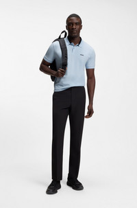 SIZE AND FIT The model wears a size M and is 6'0" tall with a, 36" chest, 31" waist and 35" hips. DETAILS With structured and striped trims, this regular-fit BOSS Menswear polo shirt adds energy to casual looks. Stretch cotton for flexible comfort. Regular fit Neckline: Flat-knit collar Number of buttons: 2 Short sleeves Flat-knit cuffs Standard length PL_Member - 50559369 QUALITY & CARE INSTRUCTIONS Do Not Dry Clean Machine Wash Cold Gentle Do Not Bleach Do Not Tumble Dry Iron Low Heat Material: 92% Cotton, 8% Elastane