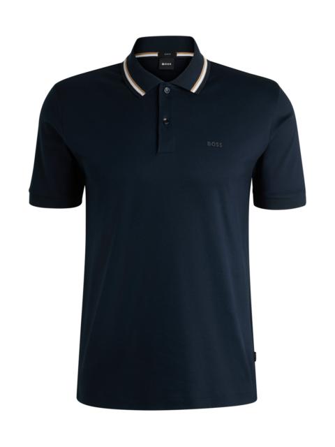 STRIPED-COLLAR SLIM-FIT POLO SHIRT IN COTTON WITH LOGO