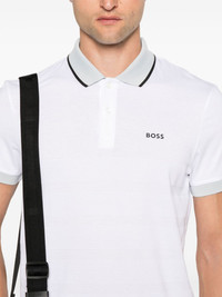 striped cotton polo shirt Highlights - White - Cotton - Jersey texture - Popcorn textured finish - Contrasting trim - Horizontal stripe pattern - Striped edge - Raised logo detail - Polo collar - Front button placket - Short sleeves with ribbed cuffs - Straight hem Imported Composition Cotton 100% SIZE & FIT Model measurements Height 6 ft 2 in(1.87 m) Bust/Chest 37.79 in(96 cm) Hips 37.79 in(96 cm) Waist 30.31 in(77 cm) FittingInformation Designed for a relaxed fit, this polo shirt offers comfort and movement Made from a midweight non-stretch fabric, this piece offers minimal elasticity when worn This piece fits true to size – take your usual size Washing instructions Machine Wash