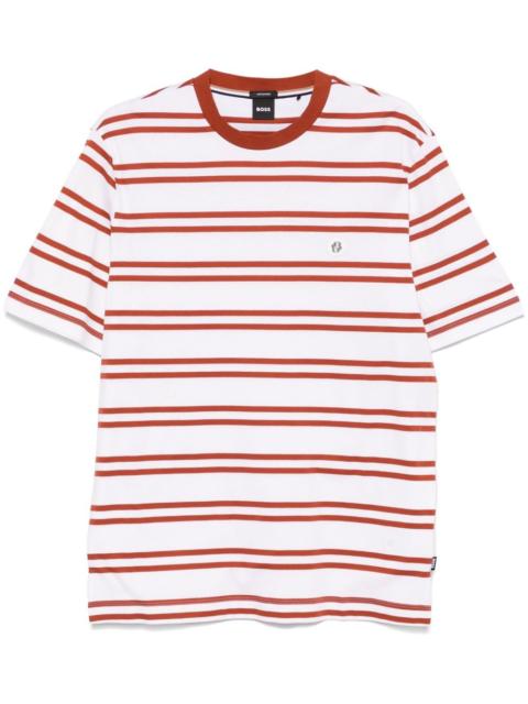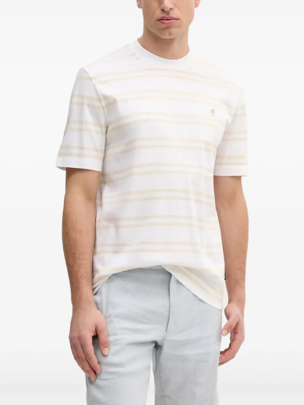 striped short-sleeved T-shirt Highlights - Off-white - Horizontal stripe pattern - Short sleeves - Crew neck - Logo detail - Cotton Imported Composition Cotton 100% SIZE & FIT FittingInformation Designed for a regular fit allowing for a comfortably loose fit throughout the body Made from a midweight non-stretch fabric, this piece offers minimal elasticity when worn Washing instructions Read Manufacturer Guidelines