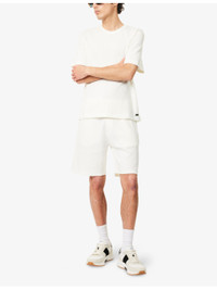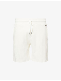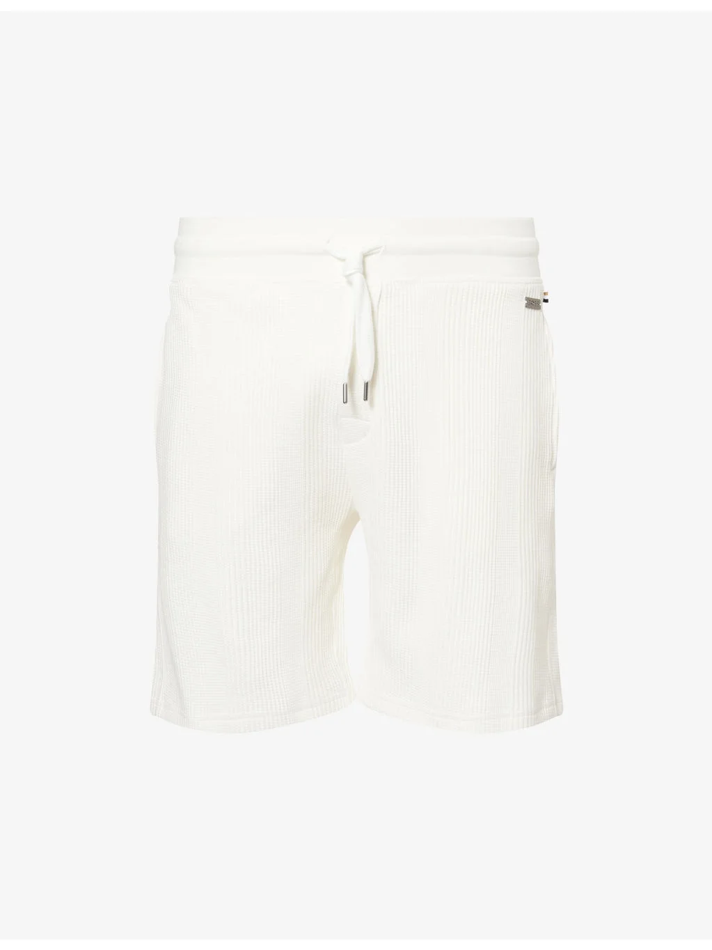 PRODUCT DETAILS - BOSS cotton-blend shorts - 60% cotton, 40% polyester - Relaxed fit, mid-rise, straight leg, drawstring elasticated waistband, two slip pockets and brand plaque at front, all-over waffle texture, all-over knitted - Machine wash at 40°C - Model is 6ft 2in/1.88m and wears a size medium - Midweight, stretchy Ref: R04454538