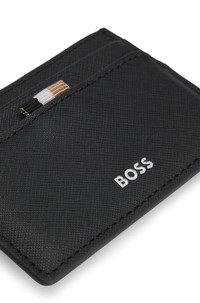 DETAILS Zair_Money clip l - 50485622 Keep cash and cards in sleek order with this modern BOSS Menswear card holder, designed with a polished brass money clip. Distinctive branding. Measurements: 7.5 x 10cm Length: 10,0 cm (3.9 inches) Height: 7,5 cm (3.0 inches) Hardware finishing: Polished silver hardware Packaging: Box QUALITY & CARE INSTRUCTIONS Quality: 100% Regenerated leather, Lining: 100% Polyester, Facing: 100% Brass