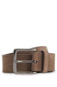 SIZE AND FIT The model wears a size 34 and is 6'1" tall with a, 36" chest, 28" waist and 36" hips. DETAILS Ronnie-Sd-St_Sz35 - 50537177 With its soft suede and polished pin buckle, this 3.5cm-width BOSS Menswear belt adds Italian-crafted charm to your look. Logo-engraved hardware. For the best fit, we advise ordering a belt one size larger than your waist size. Fully lined Hardware finishing: Polished gunmetal hardware Engraved logo on closure QUALITY & CARE INSTRUCTIONS Quality: 100% Cow leather