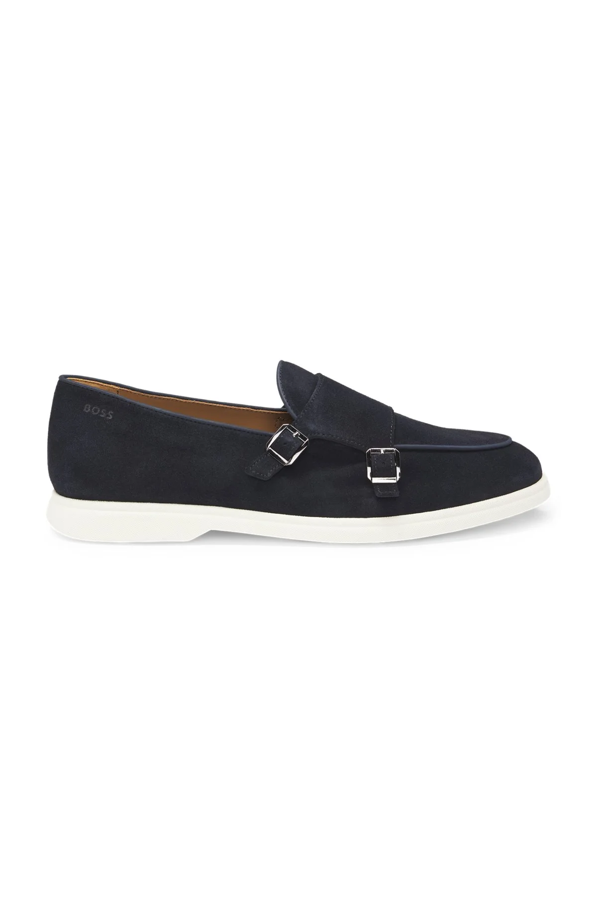 DETAILS Sienne_Monk_sd - 50541760 With a double strap featuring polished buckles, these BOSS Menswear monk shoes are an easy-wear take on a classic. Supple suede uppers. Fastening top: Buckle closure Fully lined Sole: Other material Packaging: Box QUALITY & CARE INSTRUCTIONS Upper material: 100% Cow leather, Lining: 100% Cow leather, Sole: 100% Thermoplastic polyurethane , Innersole: 100% Cow leather
