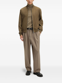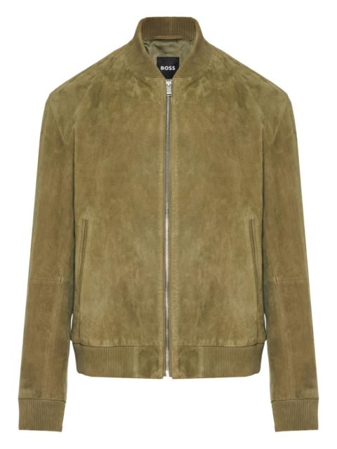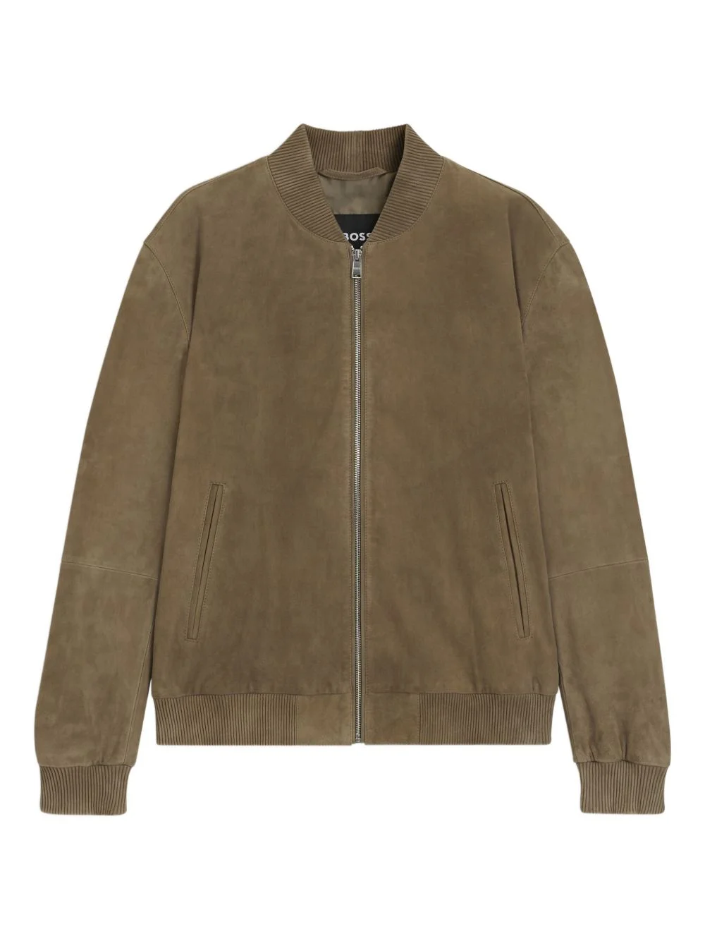 suede zip-front bomber jacket Highlights - Brown - Suede texture - Zip fastening - Ribbed cuffs - Ribbed hem - Welt pockets Imported Composition Outer: Goat Skin 100% Lining: Polyester 100% Washing instructions Read Manufacturer Guidelines