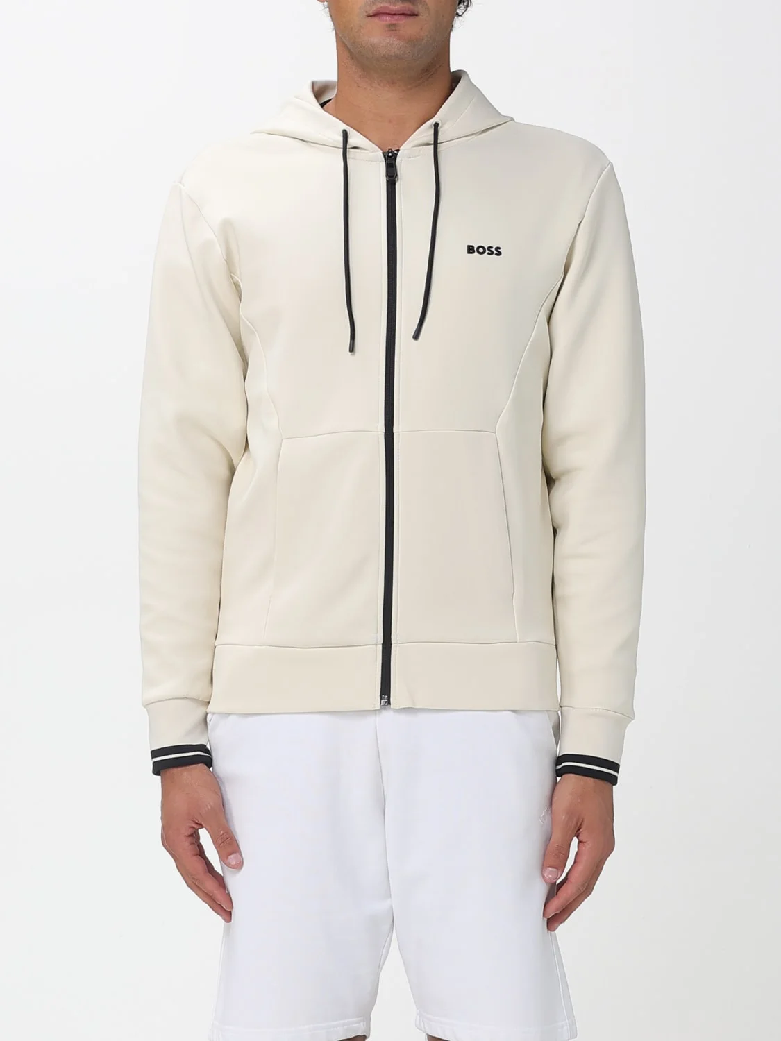 DESCRIPTION - Style: Casual, Sporty - Logo: Contrasting - Hood: With drawstrings - Shoulders: Regular - Sleeves: Long - Closure: With zip - Pockets: America - Bottom: With straight hemline - Model: With hood - Materials: Cotton blend - Pattern: Logo, Plain-colored DETAILS AND CARE Composition not available SIZE AND FIT Sizes not available Size and fit Regular fit Designer code: 50542974 131 Giglio Code: H40310 Designer: Boss Collection: Boss Men Category: Clothing Boss