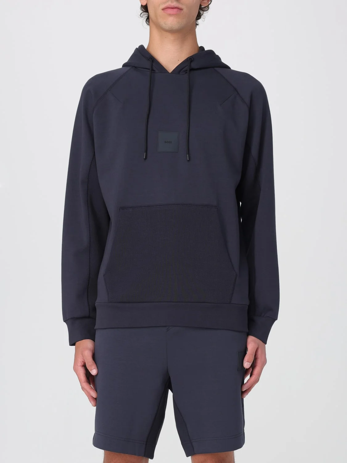 DESCRIPTION - Style: Sporty - Logo: Tone-on-tone - Hood: With drawstrings - Shoulders: Relaxed - Sleeves: Long - Cuffs: Stretch - Pockets: Kangaroo pocket - Bottom: With straight hemline - Model: With hood - Materials: Cotton blend - Pattern: Plain-colored DETAILS AND CARE Composition 74 CO 17 PC 9 EA SIZE AND FIT Sizes not available Size and fit Regular fit Designer code: 50537215 402 Giglio Code: H00939 Designer: Boss Collection: Boss Men Category: Clothing Boss