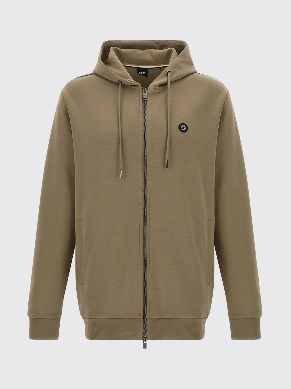DESCRIPTION - Style: Basic, Sporty - Hood: With drawstrings - Shoulders: Regular - Sleeves: Long - Cuffs: Stretch - Closure: With zip - Pockets: Slit pocket - Bottom: With straight hemline - Logo: With logo - Model: With hood - Materials: Cotton blend - Pattern: Logo DETAILS AND CARE Composition 87% cotton 13% polyester SIZE AND FIT Sizes not available Size and fit Regular fit Designer code: 50520303 245 Giglio Code: G73183 Designer: Boss Collection: Boss Men Category: Clothing Boss