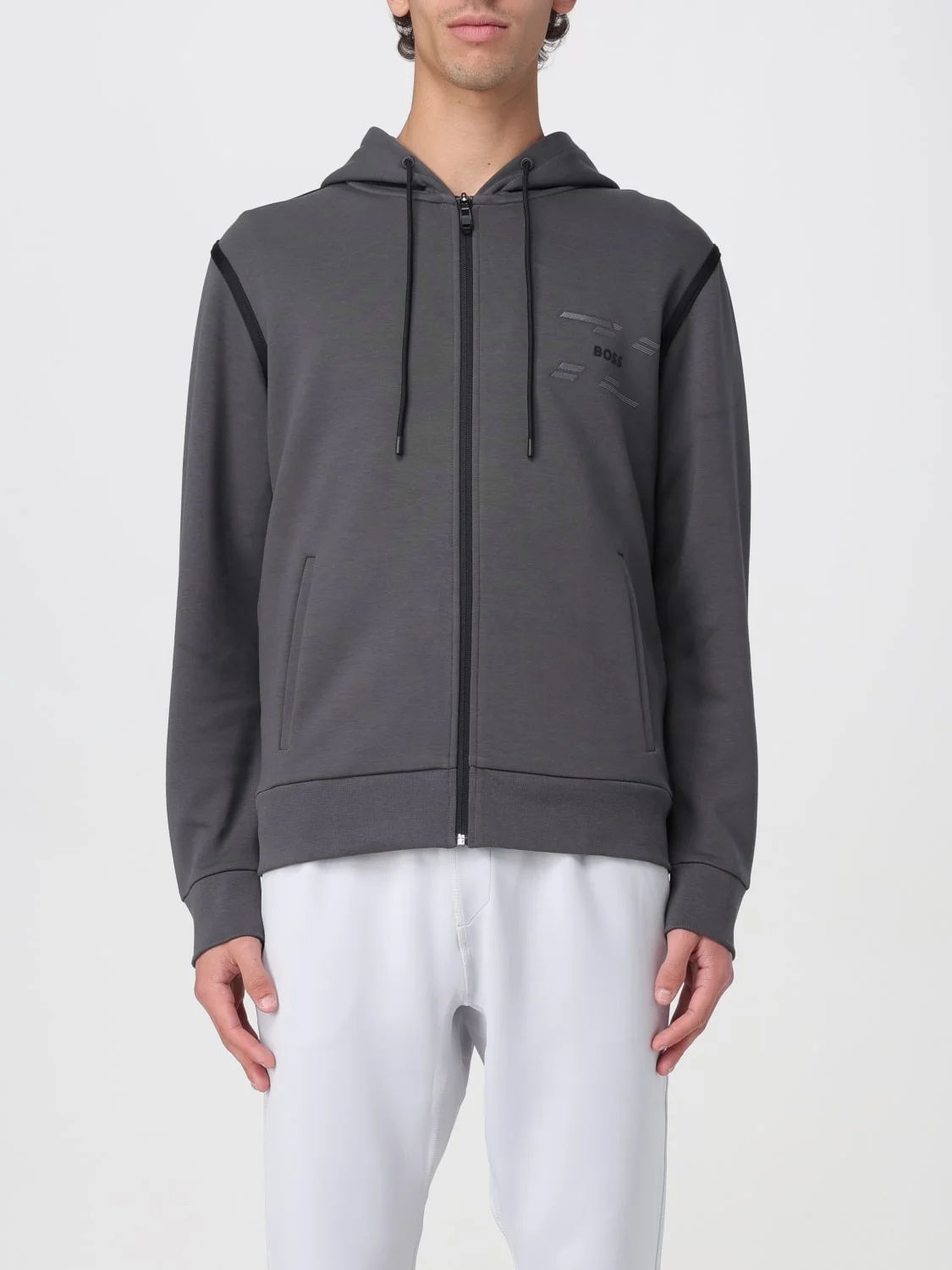 DESCRIPTION - Style: Sporty - Logo: Contrasting - Hood: With drawstrings - Shoulders: Relaxed - Sleeves: Long - Cuffs: Stretch - Closure: With zip - Pockets: Slit pocket - Bottom: With straight hemline - Model: With hood - Materials: Cotton - Pattern: Logo DETAILS AND CARE Composition 73% Cotton, 21% Polyester, 6% Elastane; SIZE AND FIT Sizes not available Size and fit Regular fit Designer code: 50530020 027 Giglio Code: G65553 Designer: Boss Collection: Boss Men Category: Clothing Boss