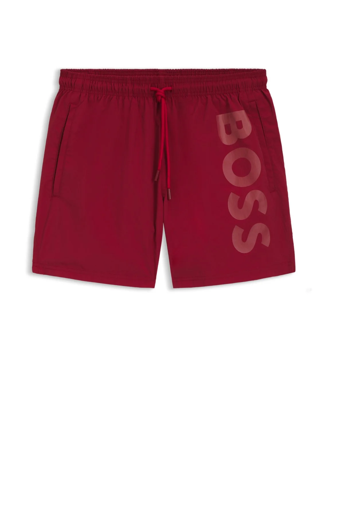 SIZE AND FIT The model wears a size M and is 6'0" tall with a, 38" chest, 29" waist and 38" hips. DETAILS Add impact to beach and pool looks with the large vertical logo print of these BOSS Menswear swim shorts. Naturally quick to dry. Octopus - 50514502 QUALITY & CARE INSTRUCTIONS Machine Wash Cold Do Not Dry Clean Do Not Tumble Dry Do Not Iron Do Not Bleach Material: 100% Polyamide, Lining: 100% Polyester