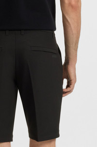 DETAILS S_Commuter_10.5 inch - 50540337 Moisture-wicking and quick to dry, these slim-fit BOSS Menswear shorts are made in advanced stretch fabric. Hidden drawcord. Secure pockets. Matching jacket available. Slim fit Regular rise Button and zip closure Elastic Waistband Slim leg Pockets bottom front: Side pockets Pockets bottom back: Welt pocket Standard length Fit foot width: 49,0 cm (19.3 inches) QUALITY & CARE INSTRUCTIONS Reduced Dry Clean Do Not Bleach Do Not Tumble Dry Quality: 95% Polyester, 5% Elastane, pocketing: 100% Polyester Iron Low Heat Machine Wash Cold Gentle