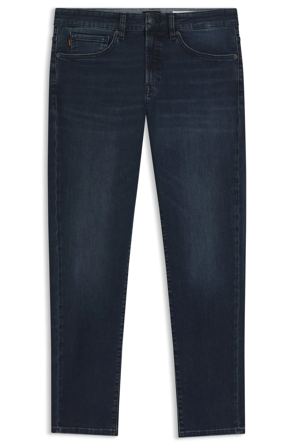 SIZE AND FIT The model wears a size 32/32 and is 6'2" tall with a, 37" chest, 30" waist and 37" hips. DETAILS Refresh your casual wardrobe with these dark-blue BOSS Menswear jeans. Cut to a tapered fit in soft-motion denim for unbeatable freedom of movement. Tapered fit Regular rise Button closure Pockets bottom front: Side pockets Tapered leg Pockets bottom back: Patch pocket Standard length Fit foot width: 34,0 cm (13.4 inches) ONYX BO - 50549528 QUALITY & CARE INSTRUCTIONS Iron Medium Heat Material: 82% Cotton, 16% Polyester, 2% Elastane Do Not Dry Clean Do Not Tumble Dry Do Not Bleach Machine Wash Cold Gentle