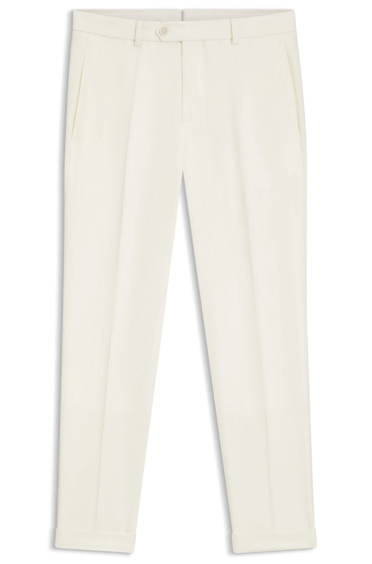 SIZE AND FIT The model wears a size 32R and is 6'1" tall with a, 36" chest, 29" waist and 36" hips. DETAILS Refresh your spring collection with the airy wool-cotton blend of these BOSS Menswear trousers. Cut to a modern cropped, tapered fit. Tapered fit Regular rise Fit foot width: 35,0 cm (13.8 inches) L-Peet-Flat-253 - 50555550 QUALITY & CARE INSTRUCTIONS Do Not Tumble Dry Iron Medium Heat Reduced Dry Clean Do Not Wash Material: 77% Virgin wool, 23% Cotton, pocketing: 100% Cotton, knee lining: 100% Viscose Do Not Bleach