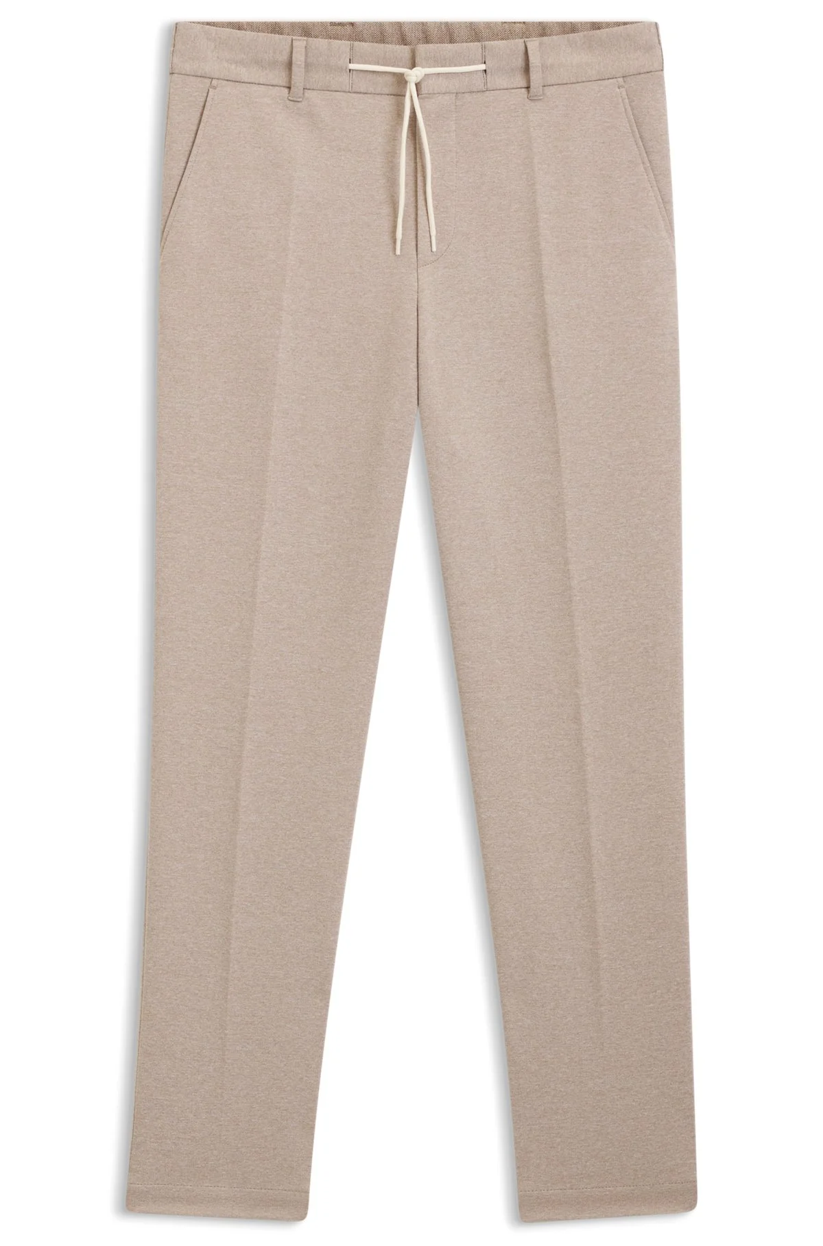 SIZE AND FIT The model wears a size 32R and is 6'1" tall with a, 36" chest, 29" waist and 36" hips. DETAILS With a reversible drawcord for discreet adjustability, these tapered-fit BOSS Menswear trousers are a business must. Patterned stretch fabric with cotton. Tapered fit Hook and zip closure Drawstring Pockets bottom front: French pocket Pockets bottom back: Welt pocket Partially lined C-Perin-RDS-261 - 50556798 QUALITY & CARE INSTRUCTIONS Do Not Bleach Do Not Tumble Dry Reduced Dry Clean Iron Low Heat Do Not Wash Material: 63% Polyester, 35% Cotton, 2% Elastane, pocketing: 65% Polyester, 35% Cotton