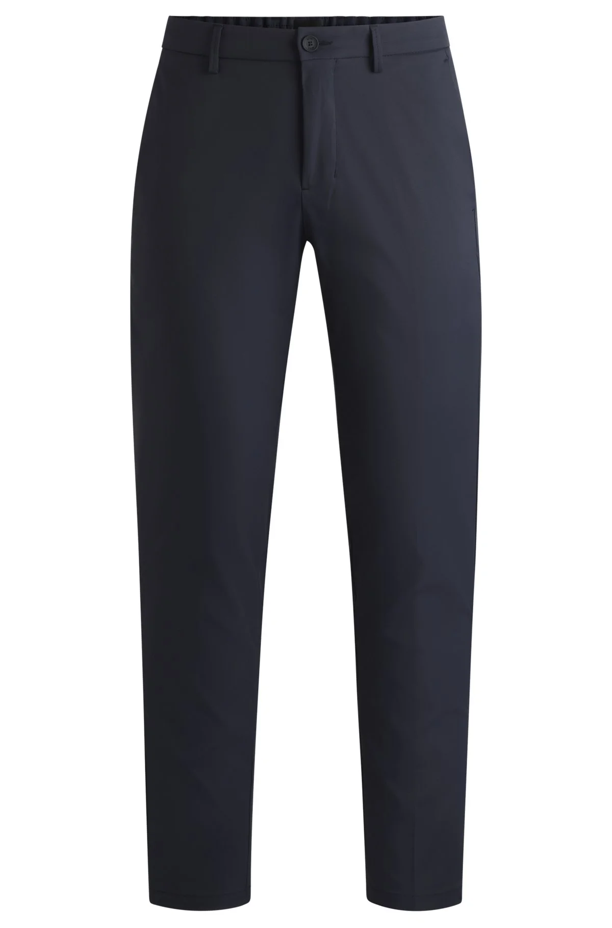 SIZE AND FIT The model wears a size 34R and is 6'2" tall with a, 38" chest, 29" waist and 36" hips. DETAILS T_Phoenix-Reg - 50495488 Regular-rise golf chinos cut to a straight fit with a tapered leg in water-repellent twill by BOSS Menswear. Regular fit Regular rise Button and zip closure Tapered leg Pockets bottom back: Patch pocket Fit foot width: 36,0 cm (14.2 inches) QUALITY & CARE INSTRUCTIONS Do Not Bleach Do Not Tumble Dry Do Not Dry Clean Quality: 100% Polyester, pocketing: 100% Polyester Iron Low Heat Machine Wash Cold Gentle