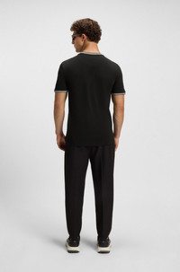 SIZE AND FIT The model wears a size M and is 6'2" tall with a, 36" chest, 31" waist and 38" hips. DETAILS Taul - 50521245 A regular-fit T-shirt by BOSS Menswear. Created in soft stretch-cotton pique, this short-sleeved top is detailed with contrast stripes and branding. Regular fit Neckline: Crew neck Short sleeves Standard length QUALITY & CARE INSTRUCTIONS Iron Low Heat Machine Wash Cold Gentle Quality: 92% Cotton, 8% Elastane Do Not Bleach Do Not Tumble Dry Do Not Dry Clean