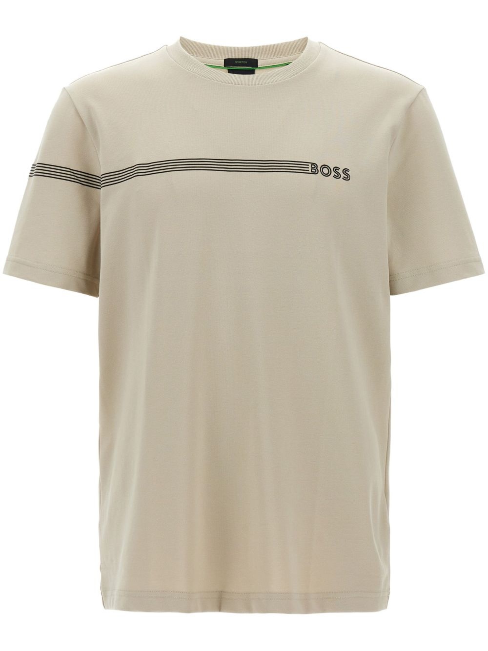 'Tee 5' T-shirt Highlights - Light beige - Logo print to the front - Stripe detailing - Crew neck - Short sleeves Imported Composition Cotton 62%, Polyester 32%, Spandex/Elastane 6%
