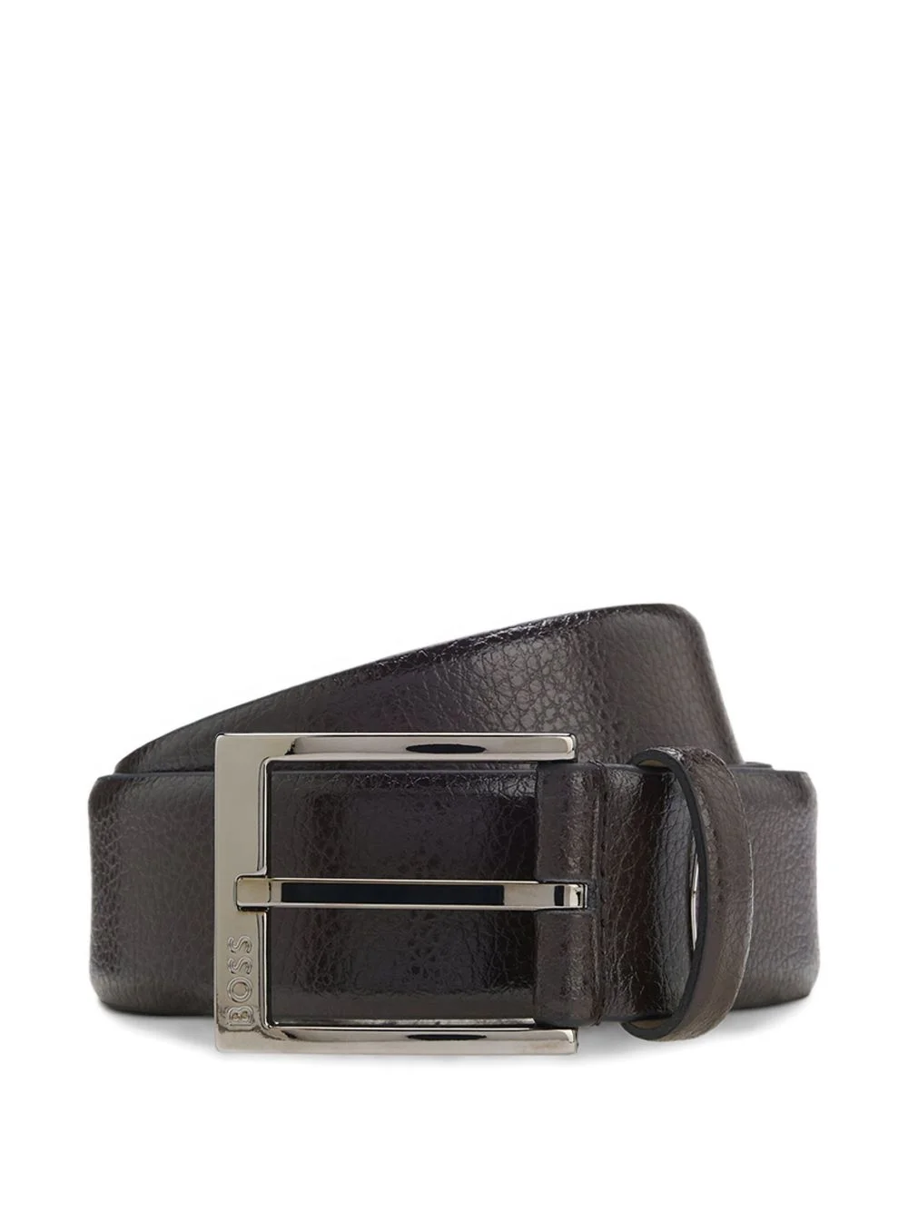 textured buckle belt Highlights - Dark brown - Textured finish - Buckle fastening - Tonal stitching - Logo detail on the buckle Imported Composition Calf Leather 100%