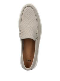 textured-leather loafers Highlights - Light grey - Branded leather insole - Flat rubber sole - Moc stitching Imported Composition Lining: Calf Leather 100% Sole: Rubber 100% Outer: Calf Leather 100%