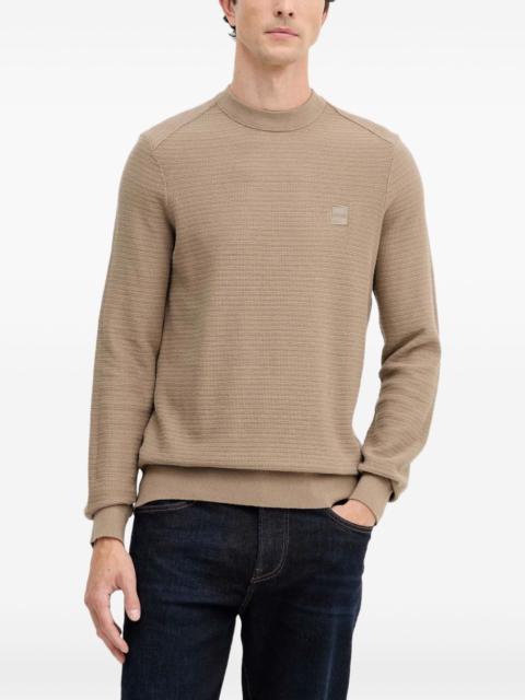 textured logo-patch sweater Highlights - Grey - Textured knit - Logo patch - Long sleeves - Round neck Imported Composition Cotton 95%, Cashmere 5% Washing instructions Read Manufacturer Guidelines